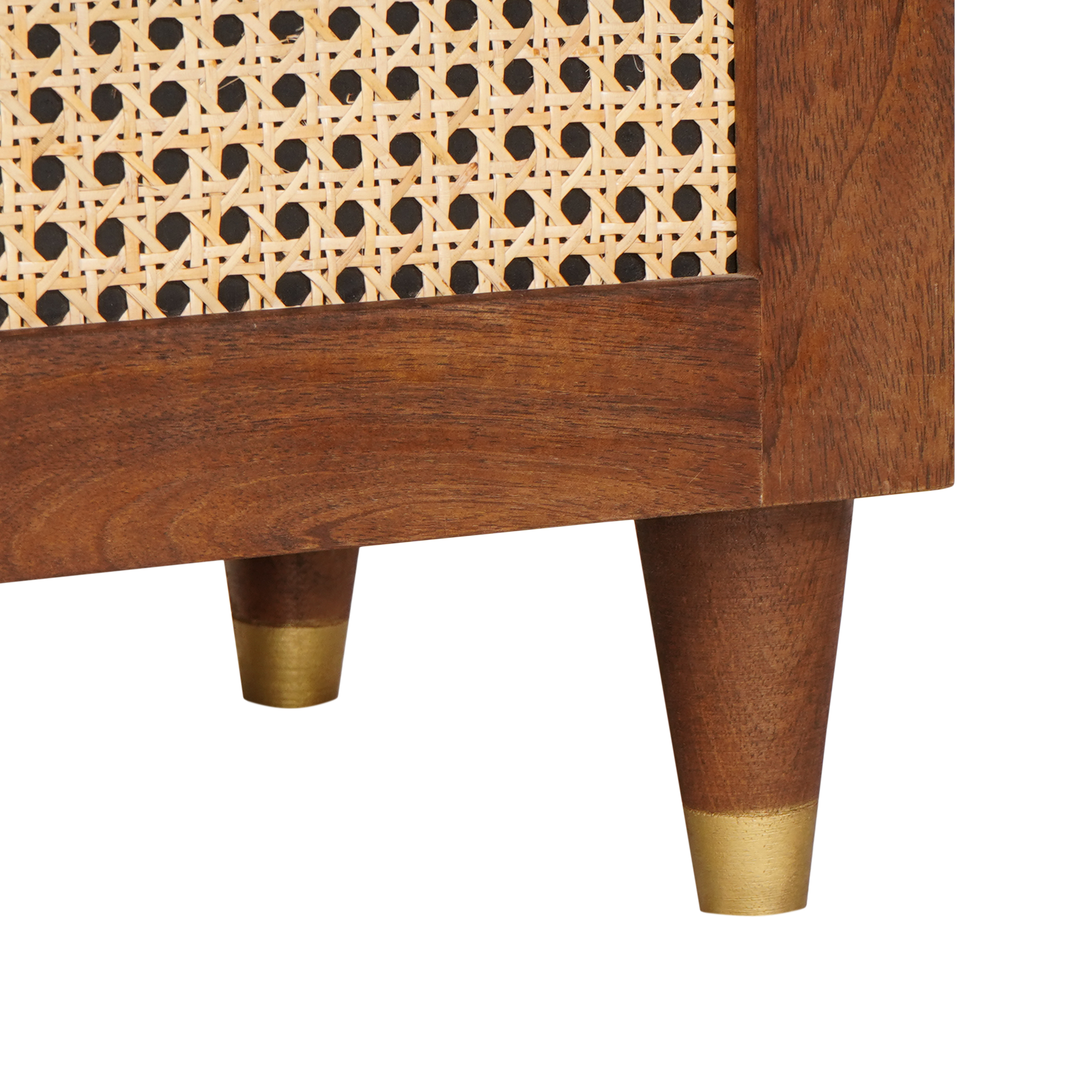 This Rectangular TV Cabinet is a stylish piece that brings charm and practicality to any room. It's perfect for indoor spaces, giving off a warm and inviting vibe with its classic shape and nifty mix of cane and solid mango wood. Great for living rooms or entertainment areas, this cabinet offers loads of storage for media gear, books, and decorative pieces-making it a flexible storage solution for today's homes. Smart Materials: The cabinet mixes solid mango wood and cane for a warm, natural vibe. It's built to last, so you know it can take a bit of wear and tear. Plus, the blend of materials adds a bit of flair, turning a useful item into a real eye-catcher in any room. Handy Components: Made with practicality in mind, this cabinet has drawers to keep DVDs, gadgets, or books organised. It keeps your space looking neat and tidy. Wire management slots let you hide those pesky cords and keep everything together. Function & Design: With its sleek, rectangular shape, this cabinet goes well with all kinds of decor, from eclectic to minimalist. It has a big enough top surface to hold a range of flat-screen TVs, while its simple design means it blends in nicely with what you've already got. Multiple Uses: Whether for your living room, lounge, or home office, this cabinet ticks all the boxes with loads of enclosed storage. Its straightforward design makes it useful not just for media but also as a stylish sideboard or extra storage in various indoor spots. Care & Maintenance: Keeping this cabinet looking its best is easy: just dust it regularly with a dry cloth, and steer clear of harsh chemicals to avoid harming it. It's made to look fab all year round, adding real value to your home.